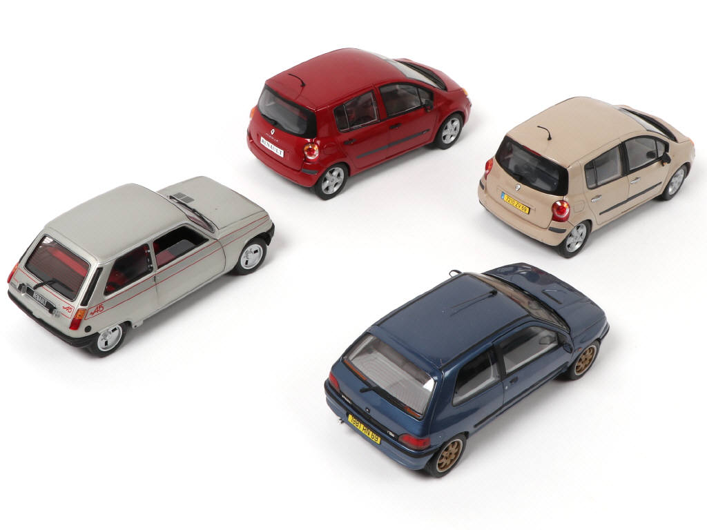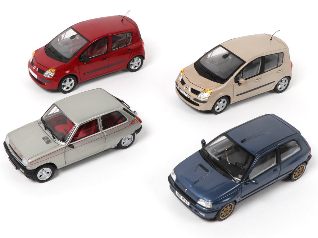 échelle 1/18ème - on y retrouve les modèles : RENAULT 5, RENAULT WILLIAMS & RENAULT MODUS - modèles légèrement encrassés