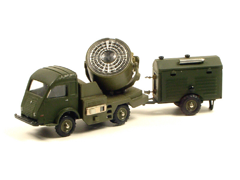 avec remorque groupe électrogène (électrique) & mécanisme de morse lumineux relié au projecteur - manque un volet de remorque & le câblage électrique raccordant la remorque au camion - soldat non d'origine - traces de métal fatigue sur la cabine & le châssis