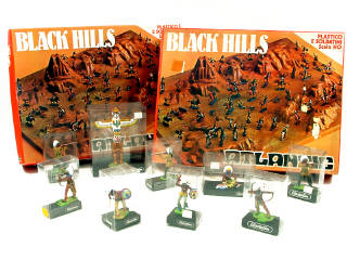 contient un décor du Far West en plastique moulé & un sachet de grappes de figurines - dimensions du décor : 44 x 33 x 7,5 cm