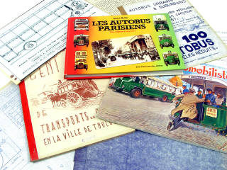 comprend : un livre 'LES AUTOBUS PARISIEN' de René Bellu, un magazine 'L'AUTOMOBILISTE' de juin 1977, une documentation 'CENT ANS DE TRANSPORT DE LA VILLE DE TOULOUSE' de 1863 à 1963 (copie) - on y joint 3 revues sur les transports urbains de 1984 & 1989, un journal 'METRO-BUS' de 1988 & un important ensemble de plans & documentations de différents bus