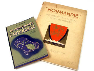 éditée en juin 1935 - présente le paquebot NORMANDIE sous tous ses aspects - on y joint un livre 'JE COMPREND L'AUTOMOBILE' de 1947