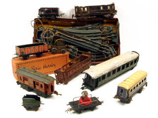 comprend différents wagons, rails & accessoires - on y retrouve les marques : BING, JEP, HORNBY & MÄRKLIN
