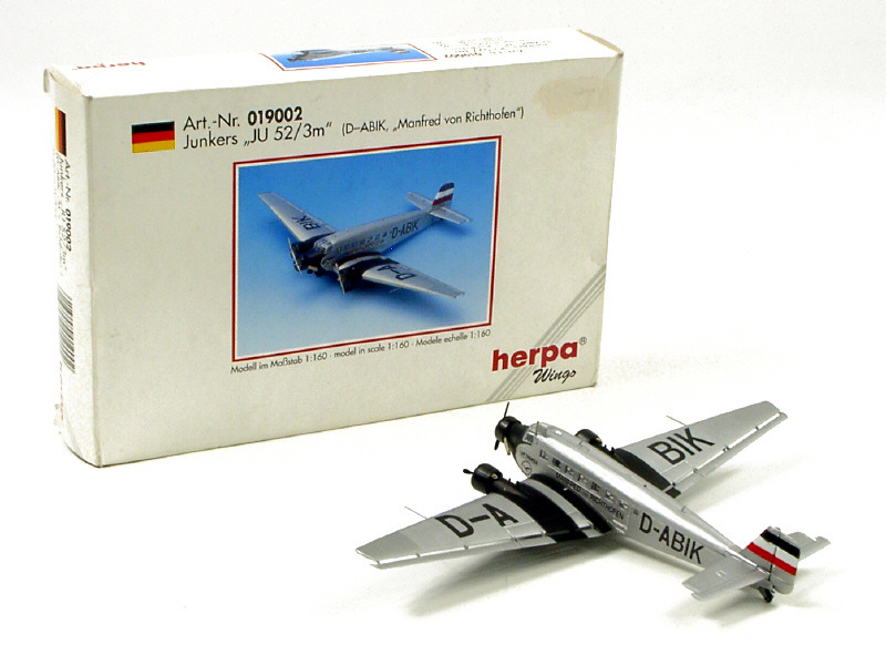 HERPA (ALLEMAGNE) 130714 JUNKERS JU-52/3m 'MANFRED VON RICHTHOFEN' gris métal & noir