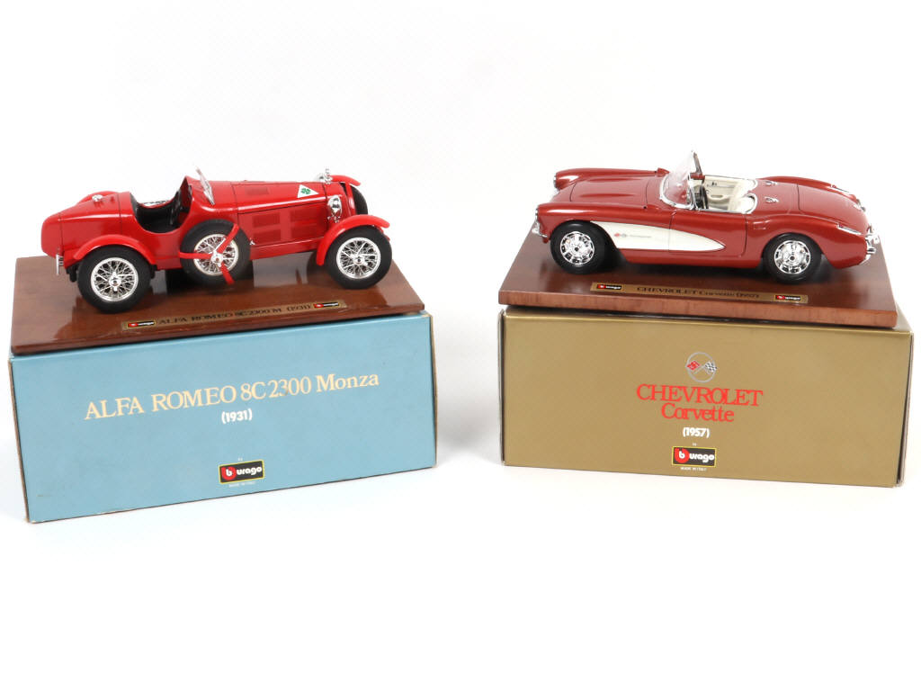échelle 1/18ème sur socle en bois - on y retrouve les modèles : CHEVROLET CORVETTE & ALFA ROMEO 8C