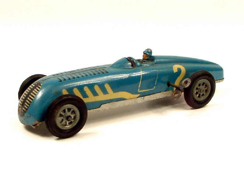 longueur 31 cm - moteur à ressort (fonctionne) - fabrication de 1956-58 avec détails au pochoir - un enfoncement sur l'avant du véhicule