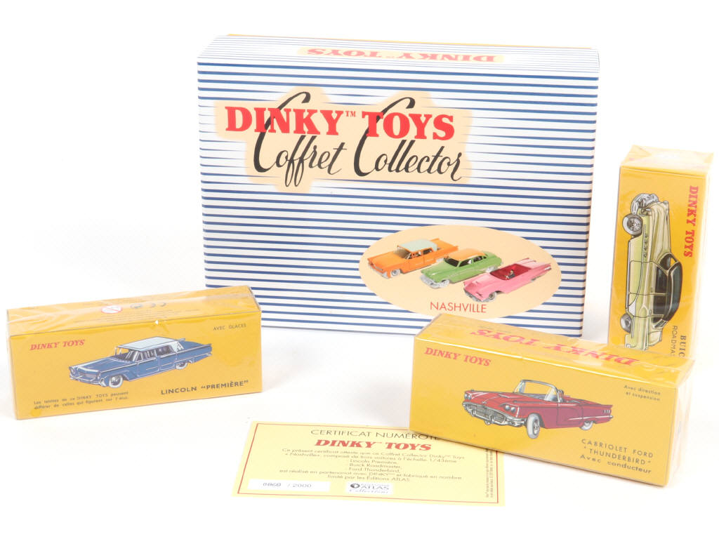 rééditions DINKY TOYS FRANCE - contient : BUICK ROADMASTER, FORD THUNDERBIRD cabriolet & LINCOLN PREMIERE - avec certificat d'édition limitée numéroté 0868/2000 exemplaires - sous blisters jamais ouverts