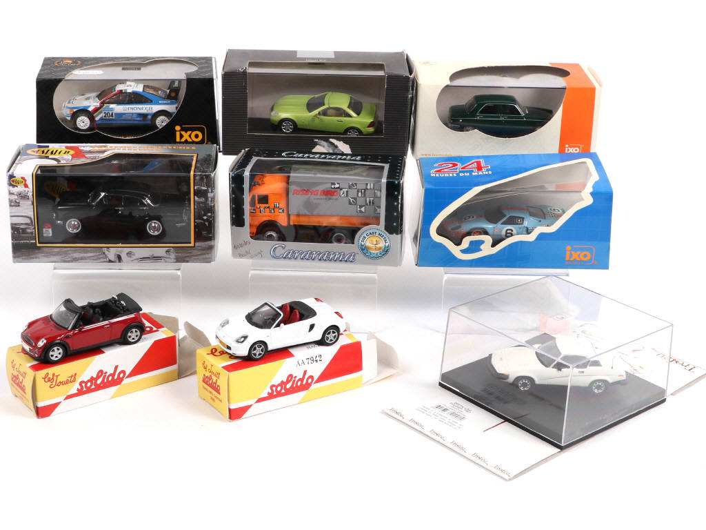 comprend notamment les marques : IXO & SOLIDO - certaines boîtes légèrement encrassées - possibilité de petits manques & parties cassées