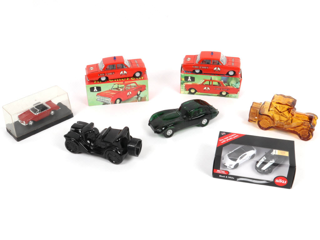 on y retrouve notamment 3 bouteilles de parfums AVON (dont une vide) ainsi que les marques SIKU & SOLIDO