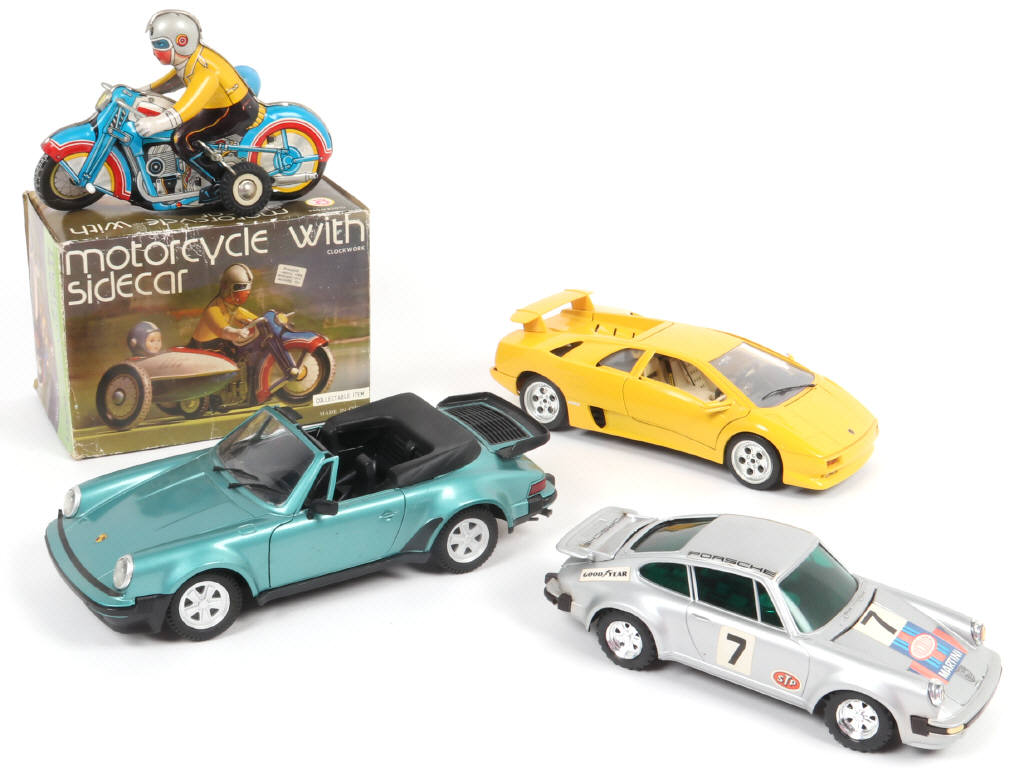on y retrouve notamment la marque POLISTIL - side car (moteur à clé fonctionne) - boîte en état 'c'