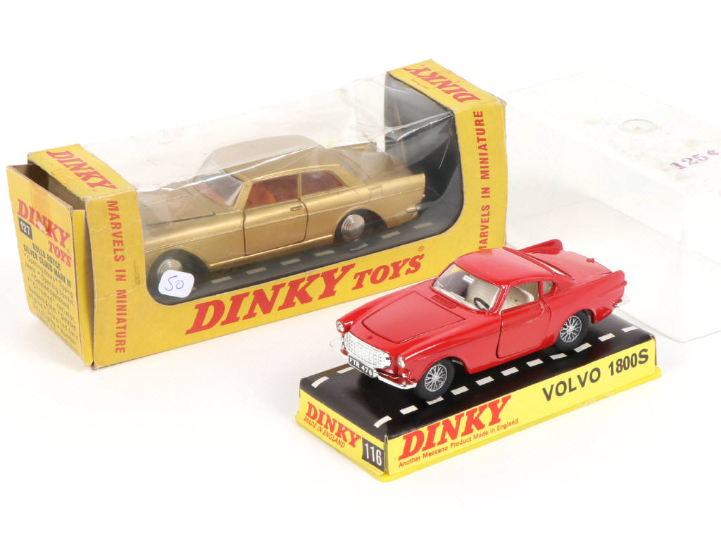 comprend : VOLVO P1800S (maintiens de socle cassés - couvercle en état 'b') & ROLLS ROYCE SILVER CLOUD MARK III (fixée au socle de boite par élastiques d'origine)
