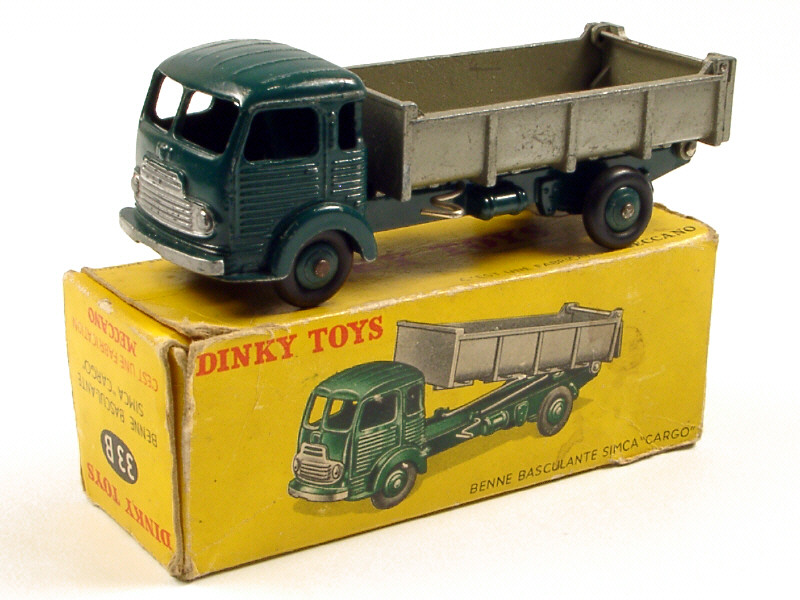 DINKY TOYS (FRANCE) 33B SIMCA CARGO Benne basculante vert foncé, benne gris métal doré (intérieur lisse)