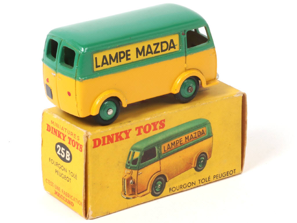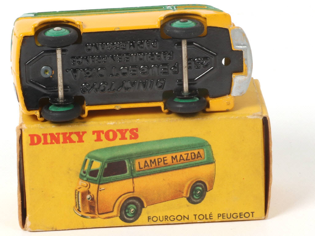 DINKY TOYS (FRANCE) 25B PEUGEOT D3A 'LAMPE MAZDA' vert & jaune