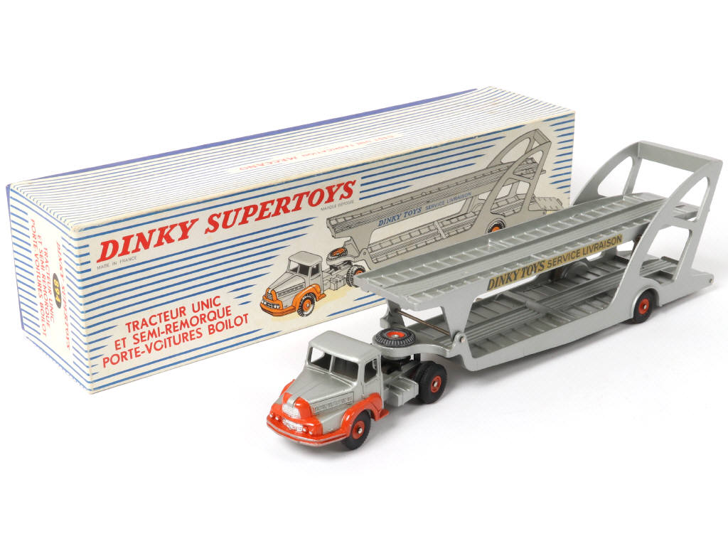 DINKY TOYS (FRANCE) 894 UNIC Porte-voitures 'BOILOT' (version avec jantes concaves) gris métal & orange