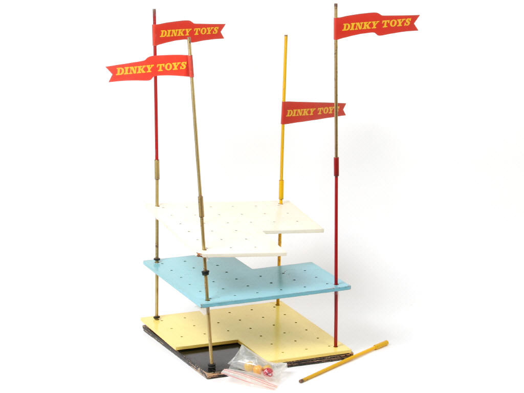 DINKY TOYS (GB) Présentoir en bois à 3 étages 'DINKY TOYS' noir, jaune, bleu & blanc