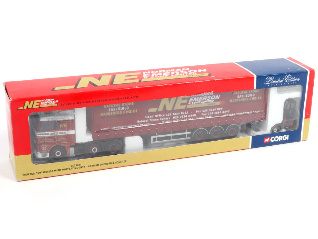 CORGI TOYS (GB) CC13404 MAN Semi-remorque fourgon bâché 'NORMAN EMERSON' rouge & blanc