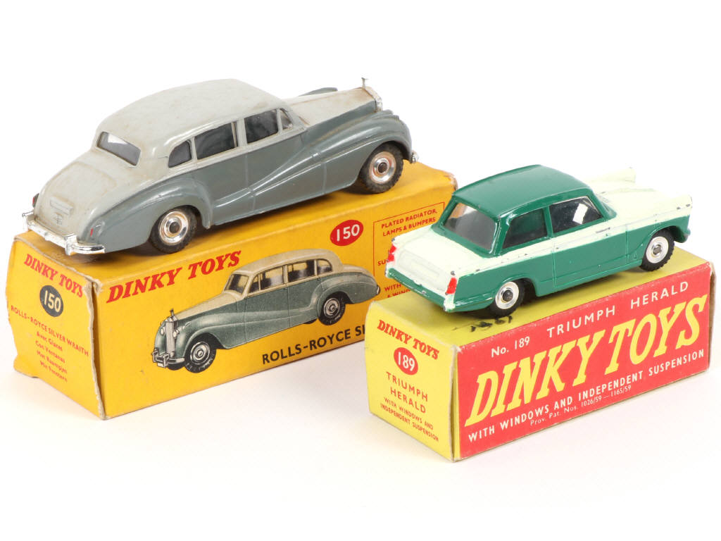 comprend : ROLLS ROYCE SILVER WRAITH (état 'B.c' - carrosserie encrassée - boite déformée) & TRIUMPH HERALD (état 'C.b')