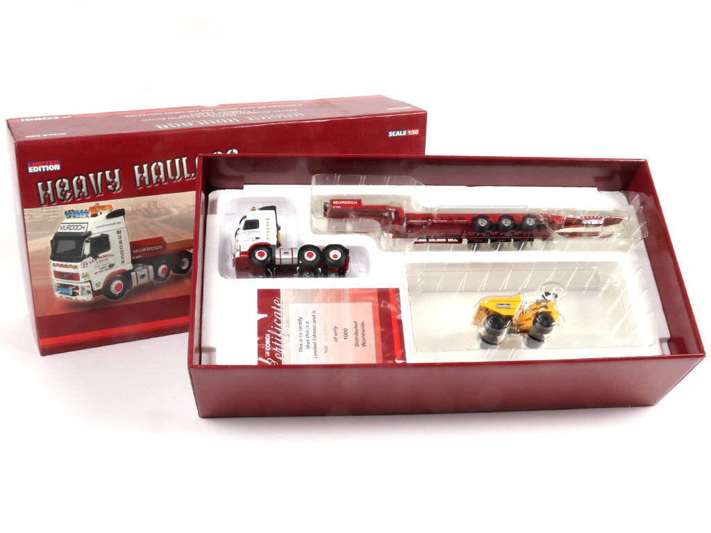 CORGI TOYS (GB) CC14014 VOLVO Semi remorque plateau subaissée avec rouleau à damer blanc & rouge
