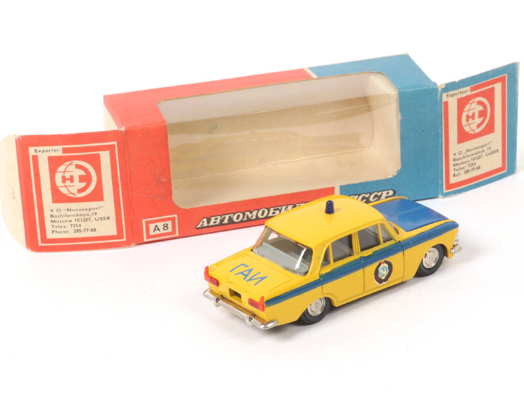 NOVOEXPORT (URSS) A-8 MOSKVITCH 412 de police jaune & bleu