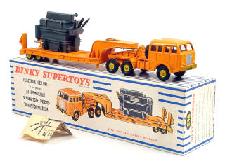 DINKY TOYS (FRANCE) 898 BERLIET Semi-remorque plateau porte-transformateur (version avec jantes de remorque convexes) orange