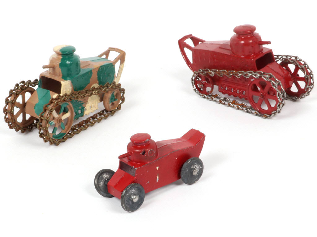 on y joint un autre exemplaire de la marque A.R en état 'C' (roues ternies dont une cassée, un défaut de moulage sur la tourelle)