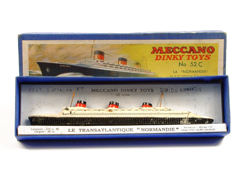 DINKY TOYS (FRANCE) 52D PAQUEBOT 'NORMANDIE' (version d'après-guerre) noir, blanc & rouge