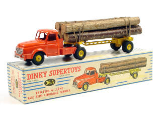 DINKY TOYS (FRANCE) 36A WILLEME Fardier (version avec jantes convexes & remorque ajourée) orange & jaune