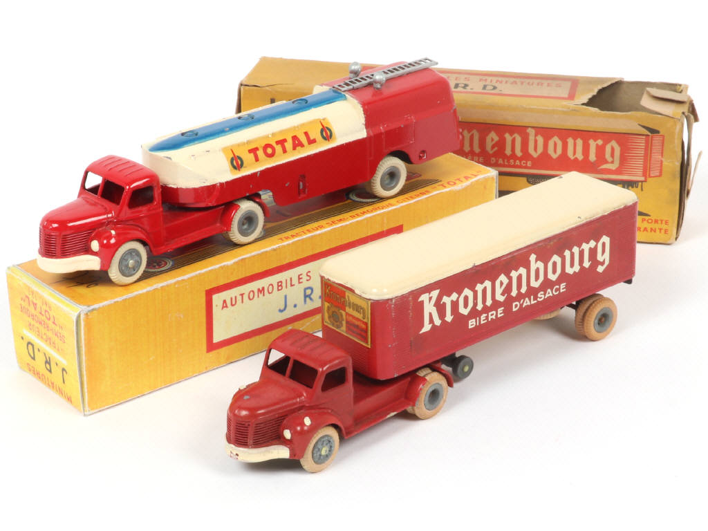 version avec logo 'KRONENBOURG' sur le fronton de la remorque - pneus jaunis - on y joint un autre exemplaire semi-remorque citerne 'TOTAL' en état 'C' (le tracteur est en état 'A', peinture épaisse d'origine, on y joint une boîte copie)