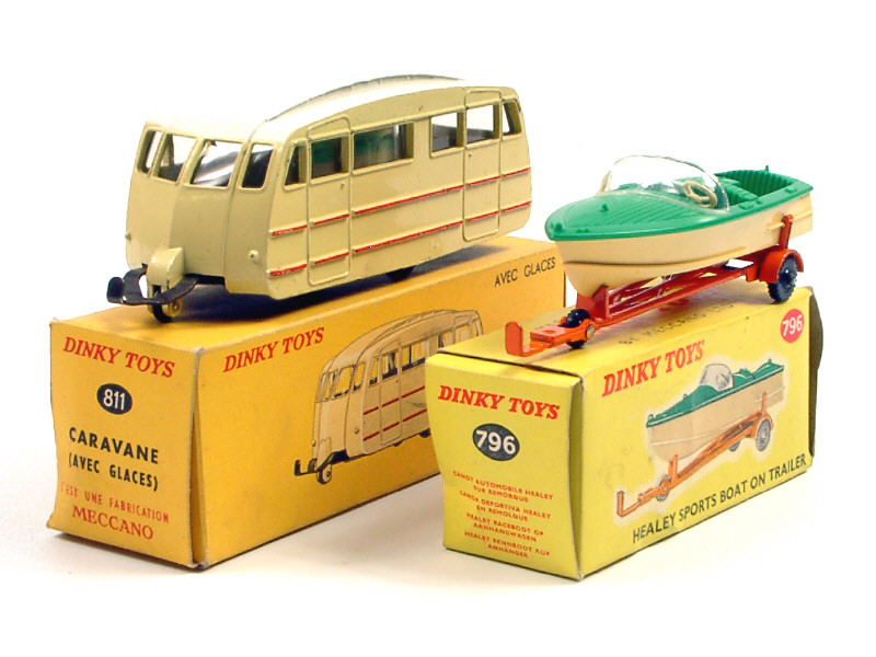 DINKY TOYS (GB) 796 HEALEY SPORTS BOAT avec remorque orange, crème & vert