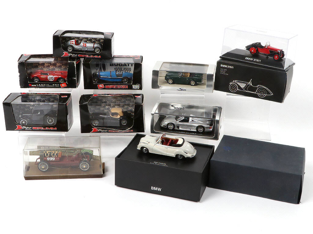comprend les marques : BRUMM, SPARK & BMW - on y retrouve notamment les modèles : MERCEDES-BENZ AMG CLK GTR ROASTER, TRIUMPH Tr4 & LANCIA D24 - boîtes en états 'b' à 'c'