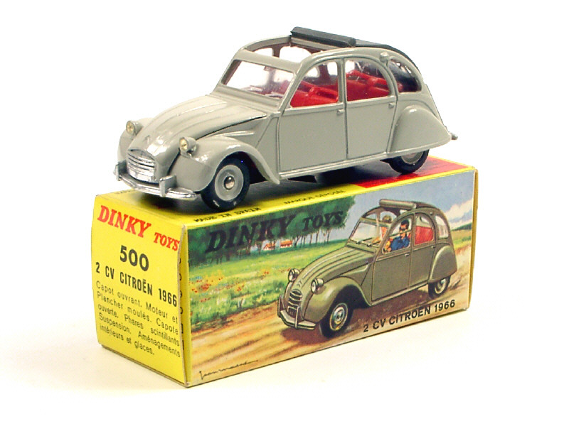 DINKY TOYS (FRANCE) 500 CITROËN 2CV Décapotée (made in SPAIN) gris clair, jantes grises