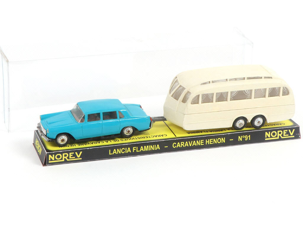 NOREV (FRANCE) 99 LANCIA FLAMINIA avec caravane HENON bleu turquoise & blanc