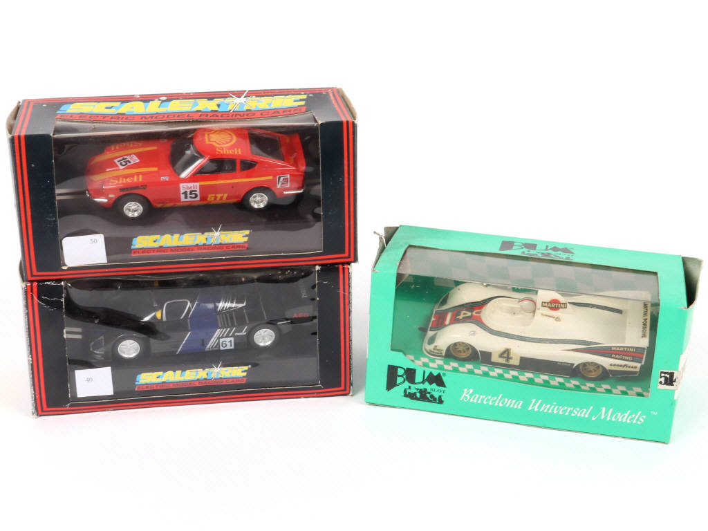 échelle : 1/32ème - non testé - boîtes encrassées - on y retrouve notamment la marque SCALEXTRIC