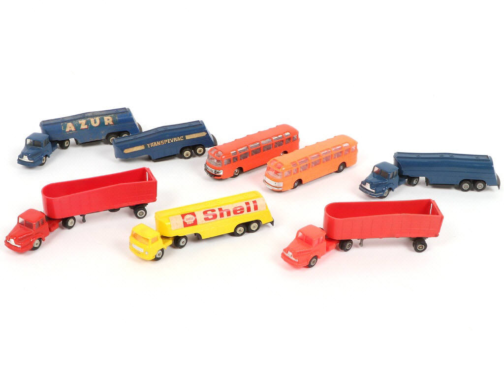 série MICRO - comprend notamment les modèles : UNIC REMORQUE TITAN N°3, UNIC ESTEREL CITERNE 'SHELL' N°527 & AUTOCAR SAVIEM SC1 N°528 - avec manques & parties cassées