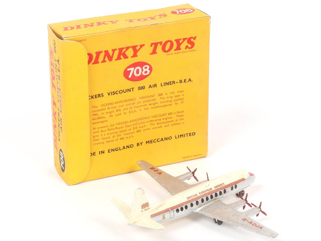 DINKY TOYS (GB) 708 VICKERS VISCOUNT 'BRITISH EUROPEAN AIRWAYS' gris métal, crème & rouge