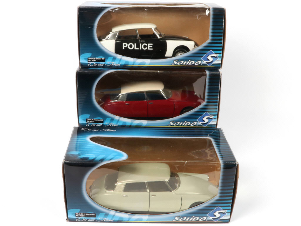 échelle 1/18ème - comprend les modèles : 3 DS BERLINE de (1963) - boîtes en états 'b' à 'd' - manque cales de boîtes intérieures