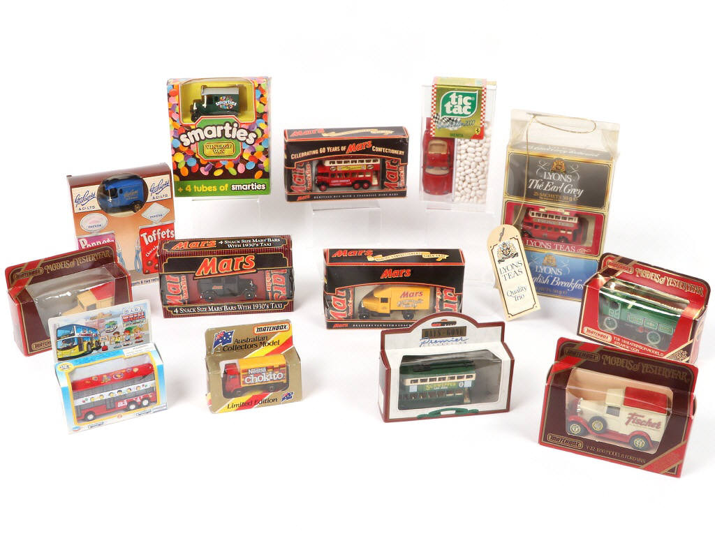 comprend notamment les marques : BBURAGO, LLEDO & MATCHBOX - on y retrouve : MAXI TIC-TAC avec la FERRARI 550 MARANELLO (scellée), VINTAGE VAN 'SMARTIES' & VINTAGE TAXI 1930 'MARS' - boîtes en états 'a' à 'b' - ATTENTION : LES FRIANDISES ET LE THÉ SONT IMPROPRES A LA CONSOMMATION AU VU DE LEUR DATE DE PEREMPTION (1996-1997)