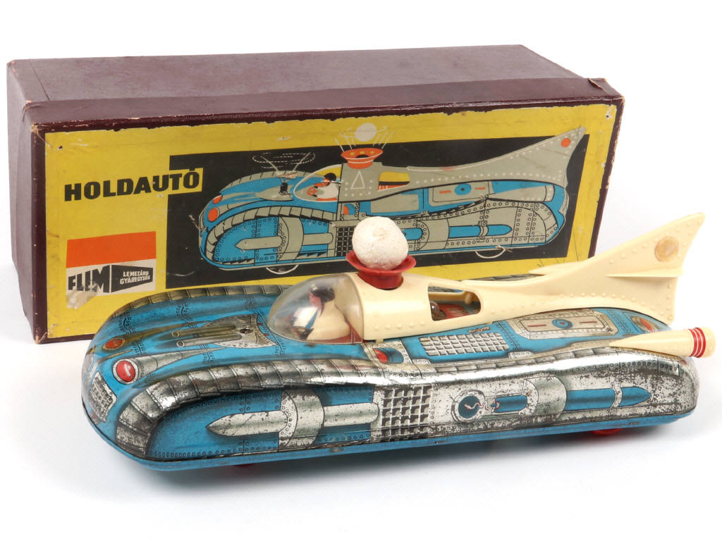LEMEZARU (HONGRIE) Voiture futuriste en tôle lithographiée bleu, argent & gris