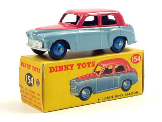 DINKY TOYS (GB) 154 HILLMAN MINX bleu ciel & rose soutenu, jantes bleu vif