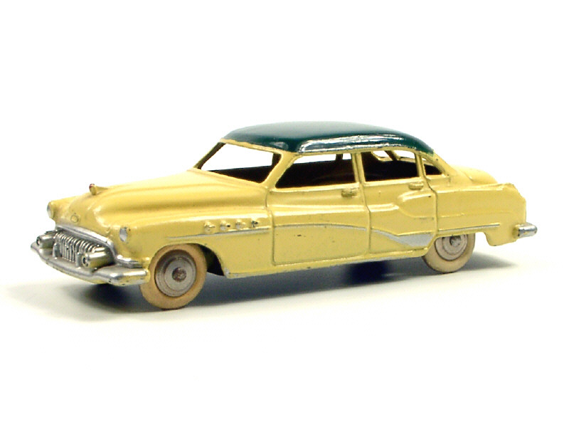 DINKY TOYS (FRANCE) 24V BUICK ROADMASTER (version avec intérieur de toit quadrillé & jantes chromées) jaune paille, toit vert