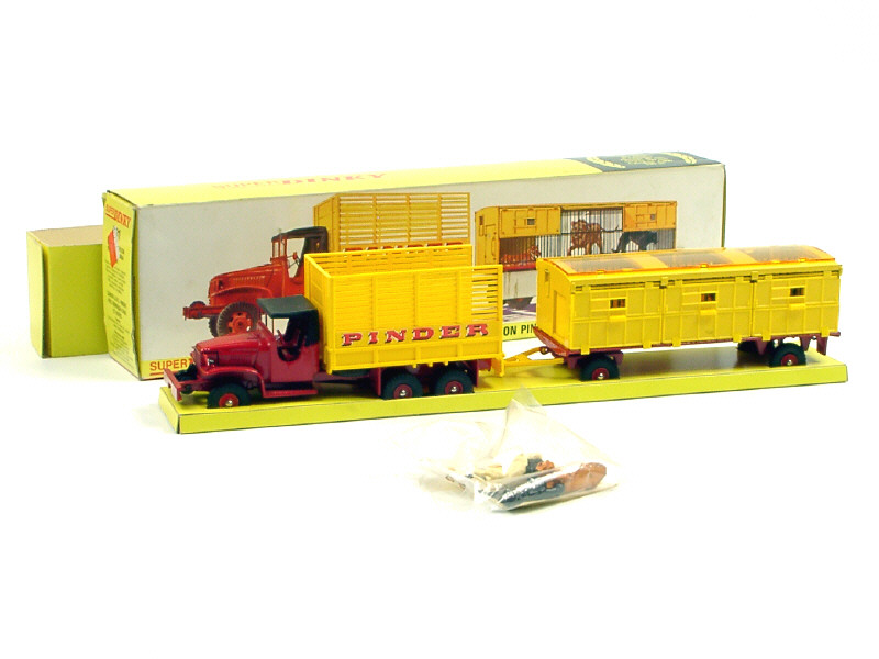 DINKY TOYS (FRANCE) 881 GMC 'PINDER' avec remorque-cage à fauves rouge & jaune