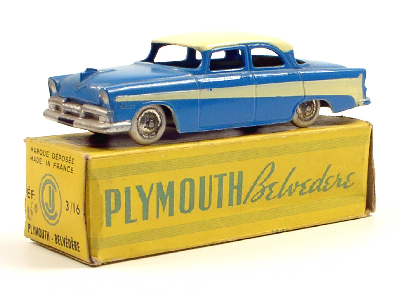 C.I.J. (FRANCE) 3/16 PLYMOUTH BELVEDERE bleu & crème