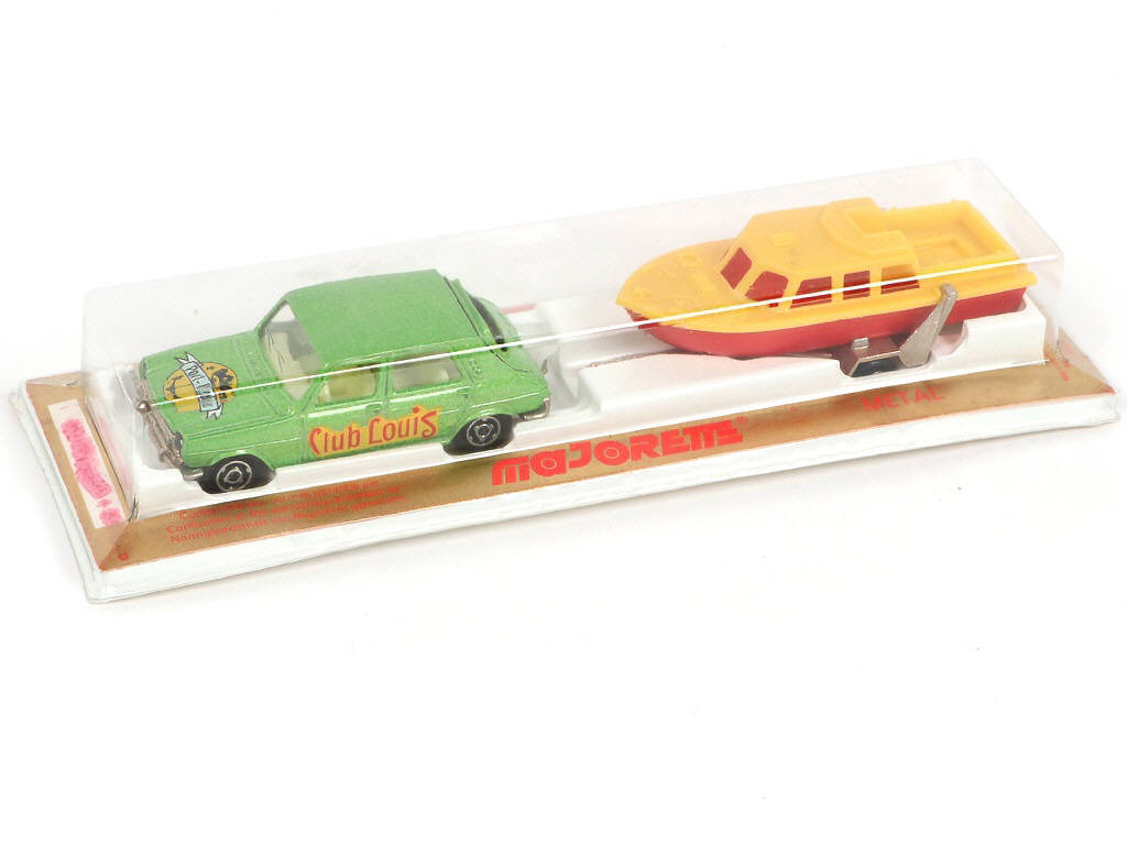 MAJORETTE (FRANCE) 314 SIMCA 1100 avec bateau sur remorque 'CLUB LOUIS' vert, jaune & rouge