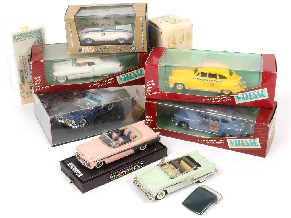 on y retrouve notamment les marques : BRUMM & VITESSE - quelques manques & parties cassées sur 2 exemplaires - les boîtes sont en état de 'b' à 'd'