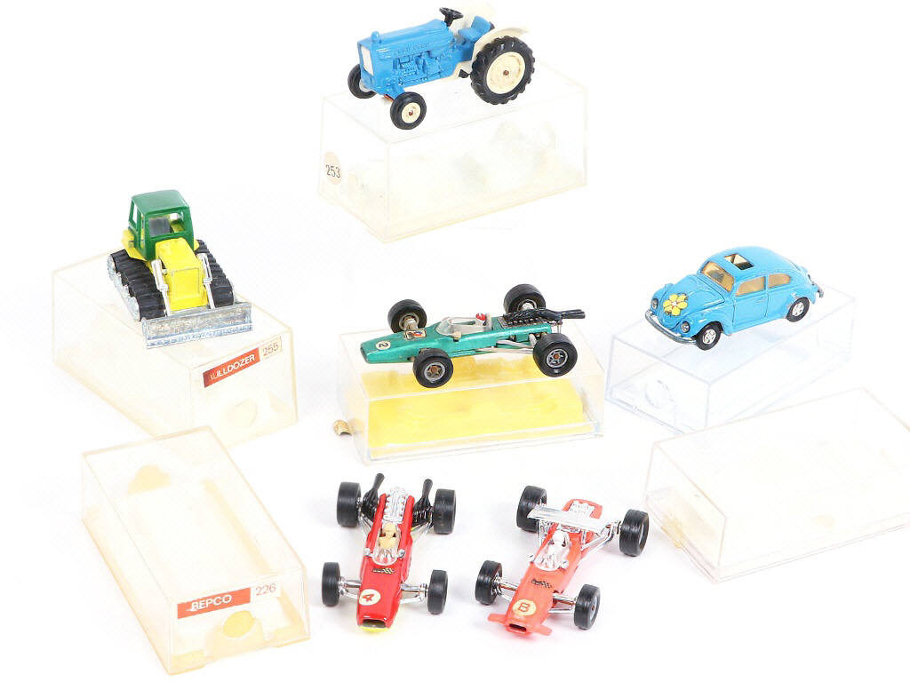 comprend notamment les modèles : VOLKSWAGEN (boîte copie), BULLDOZER & REPCO - boîtes en état 'b' à 'c'