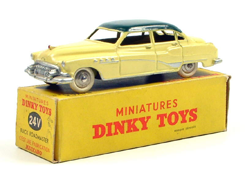 DINKY TOYS (FRANCE) 24V BUICK ROADMASTER (version avec intérieur de toit quadrillé & jantes chromées) jaune paille, toit vert