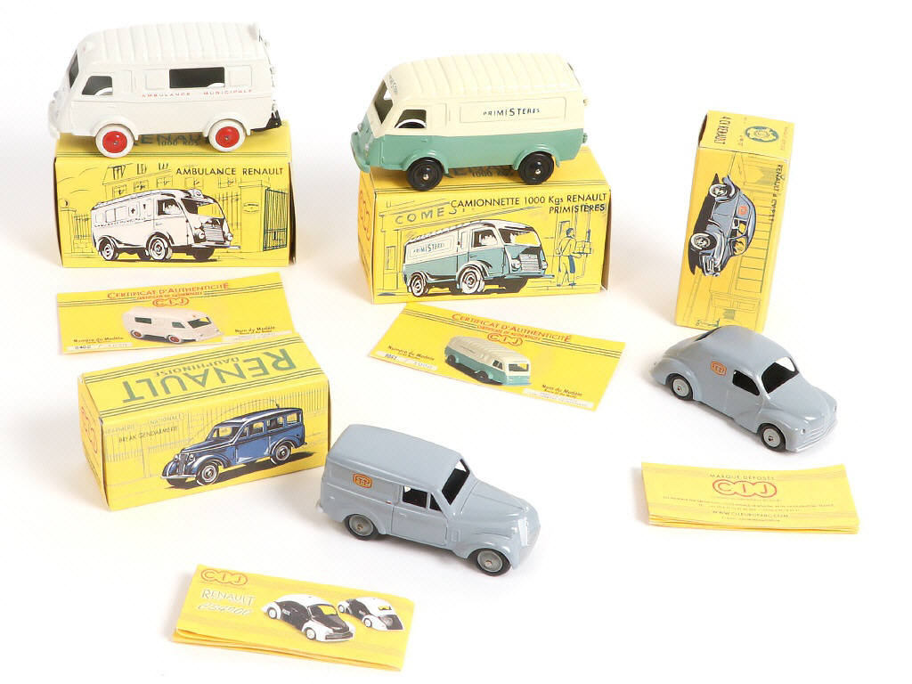 réédition 'C.I.J.' - comprend notamment : CAMIONNETTE 1000 Kgs RENAULT (édition limitée numérotée 0084/1000) & AMBULANCE RENAULT (édition limitée numérotée 0402/1000 exemplaires)