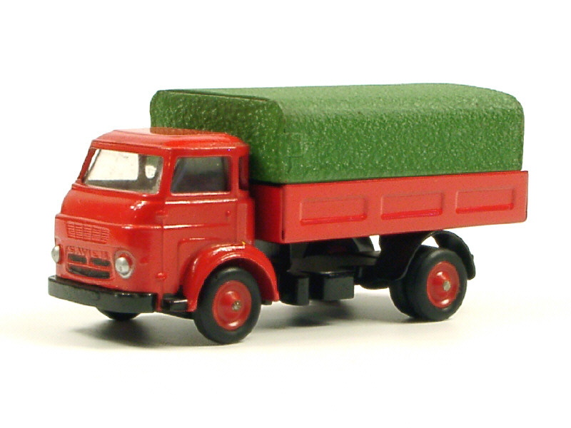 C.I.J. (FRANCE) 4/77 SAVIEM S7 Plateau à ridelles bâché rouge, bâche verte
