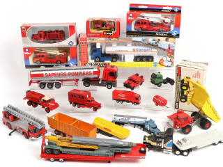 différentes échelles - comprend notamment les marques : JOAL, SOLIDO, LBS & DINKY TOYS - avec manques & parties cassées - boîtes en état 'b' à 'c'