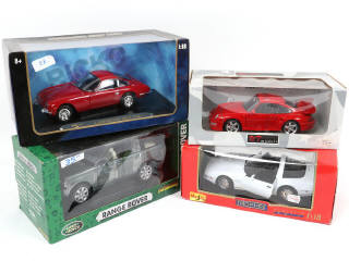 échelle : 1/18ème - on y retrouve notamment les marques : MAISTO & UT MODELS - boîtes plus ou moins salies (une en état 'c')