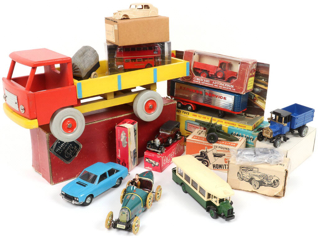 on y retrouve notamment les marques : CORGI TOYS, SOLIDO & EPOKIT - les kits à monter semblent complets - quelques manques & parties cassées sur certains exemplaires - on y joint 2 boîtes vides des marques MERCURY & GEGE en état 'c'